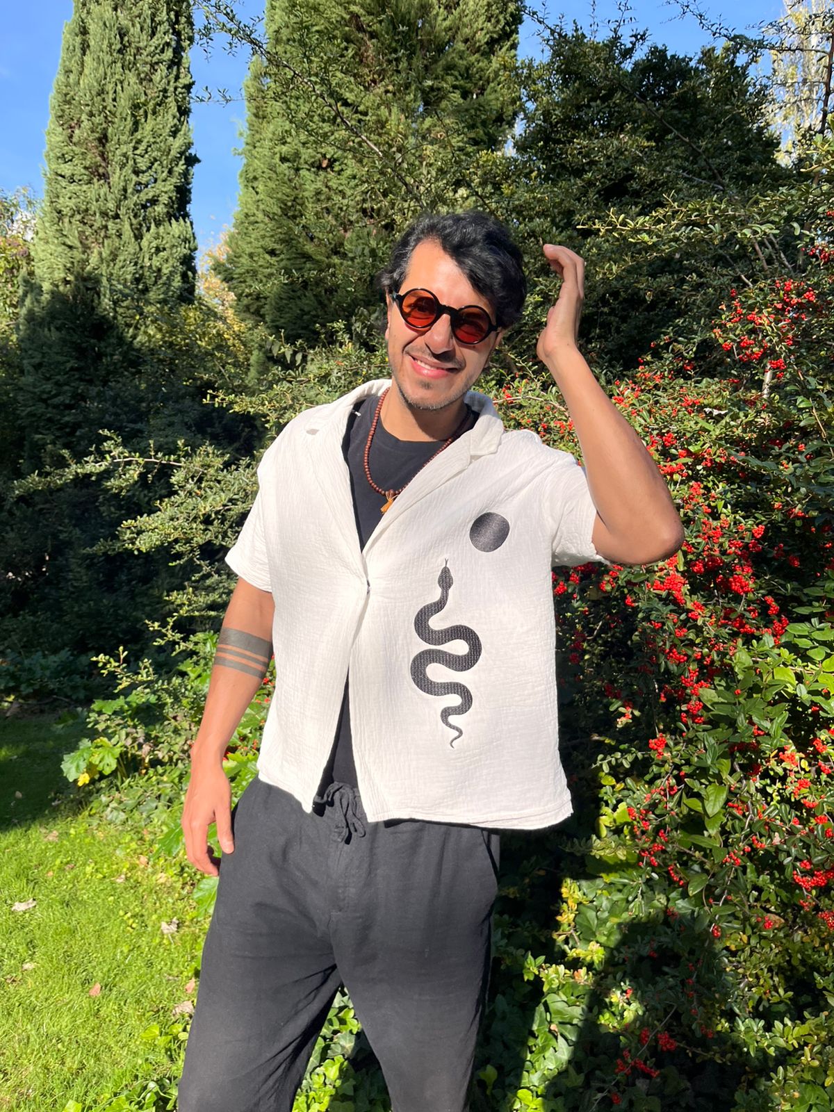 Una camisa oversize en algodón organico Terry texturizado, relajada pero elegante. El tejido tiene una caída y un peso natural que la hacen fácil de llevar en cualquier temporada. Con la opción de llevar bordado nuestro emblema Elemental —el sol que nos une—, es una pieza que se adapta a ti y deja brillar tu autenticidad.