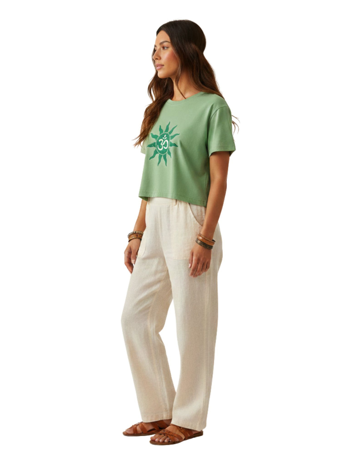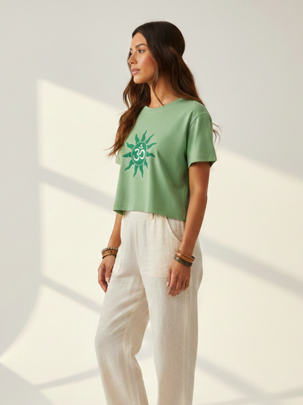 Una camiseta oversized corta en algodón orgánico, diseñada para moverse con total libertad. Su silueta amplia y equilibrada aporta comodidad inmediata y un estilo natural y relajado.