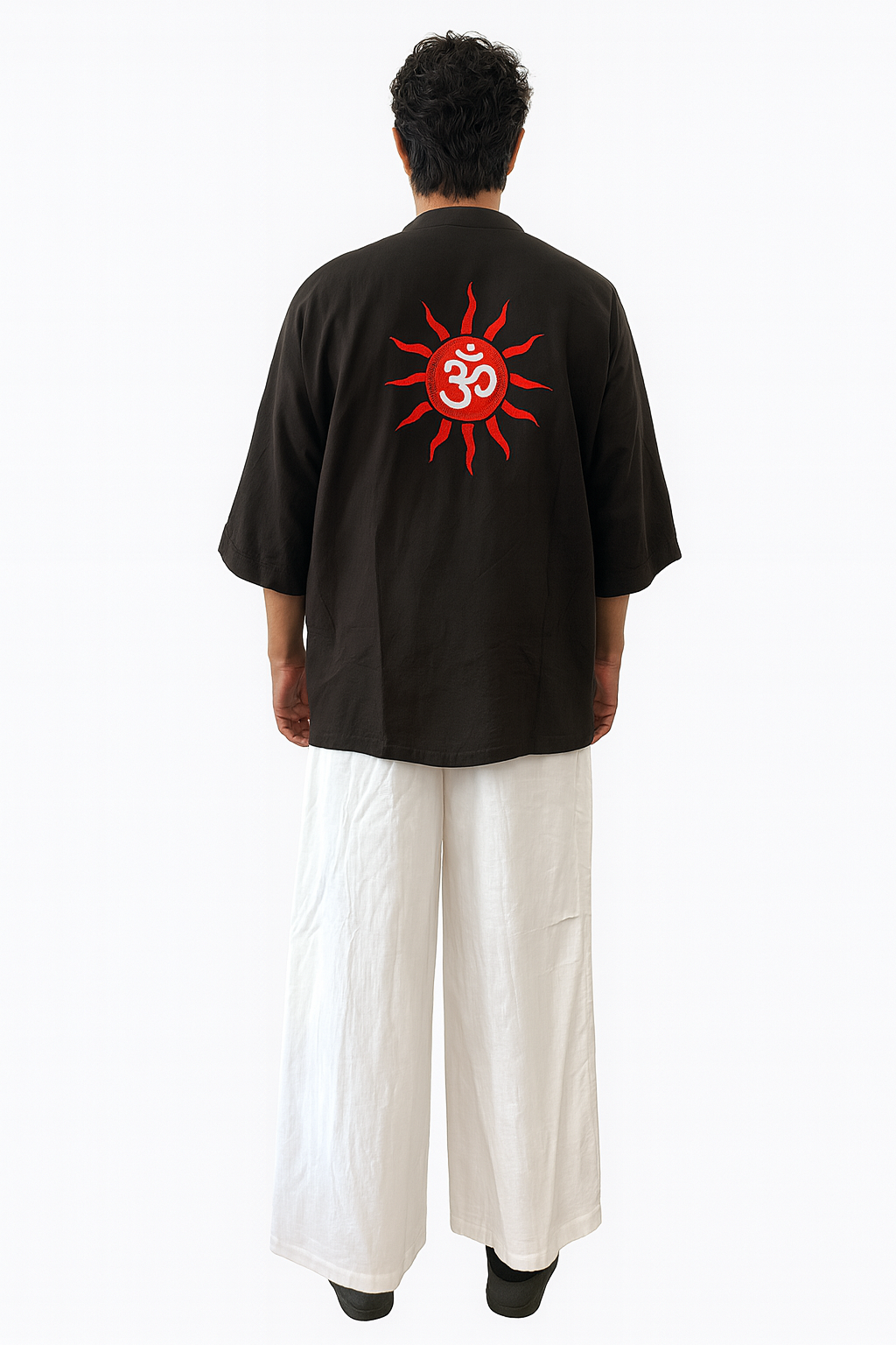 Kimono corto de lino versátil con mangas ¾ que fluye con tu estilo. Personalízalo con tu «animal de poder» bordado y nuestro emblema del sol Elemental.